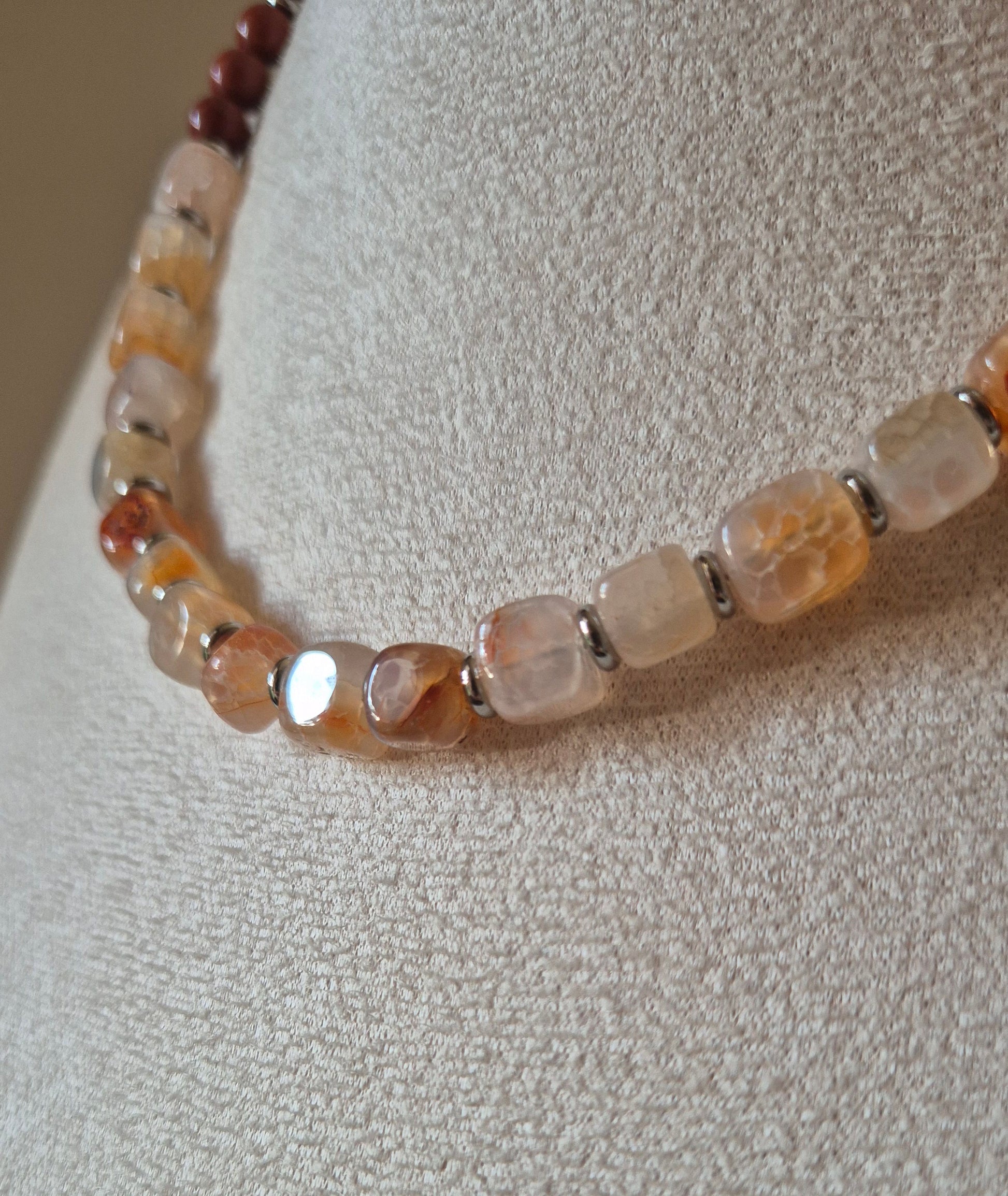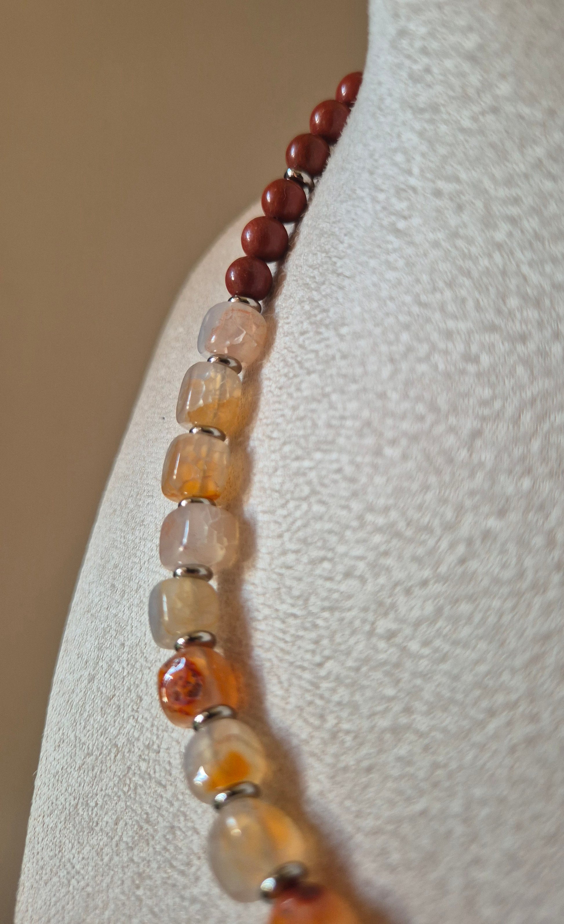 Collier agate beige & jaspe rouge