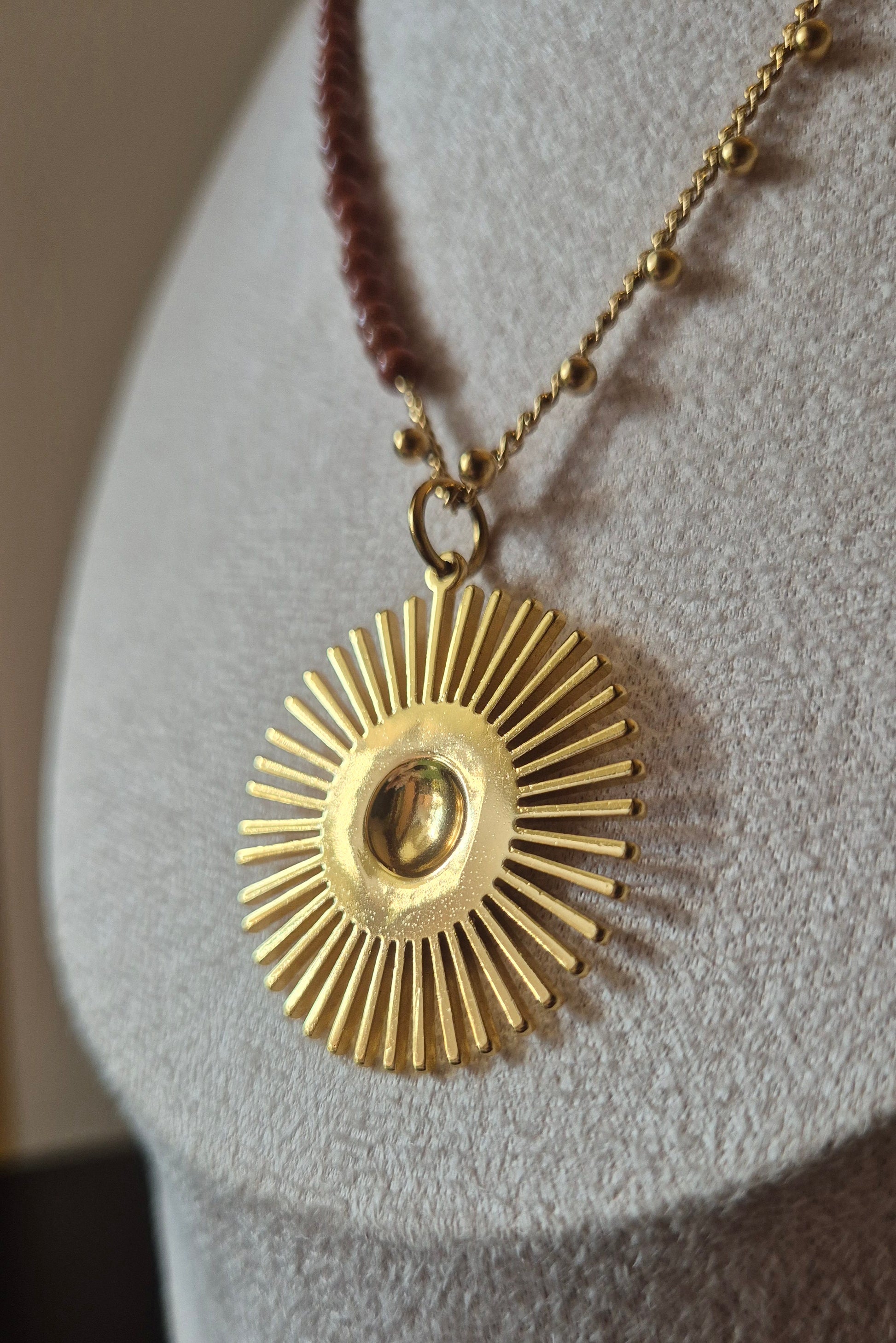 Collier chaîne dorée & pierre de soleil