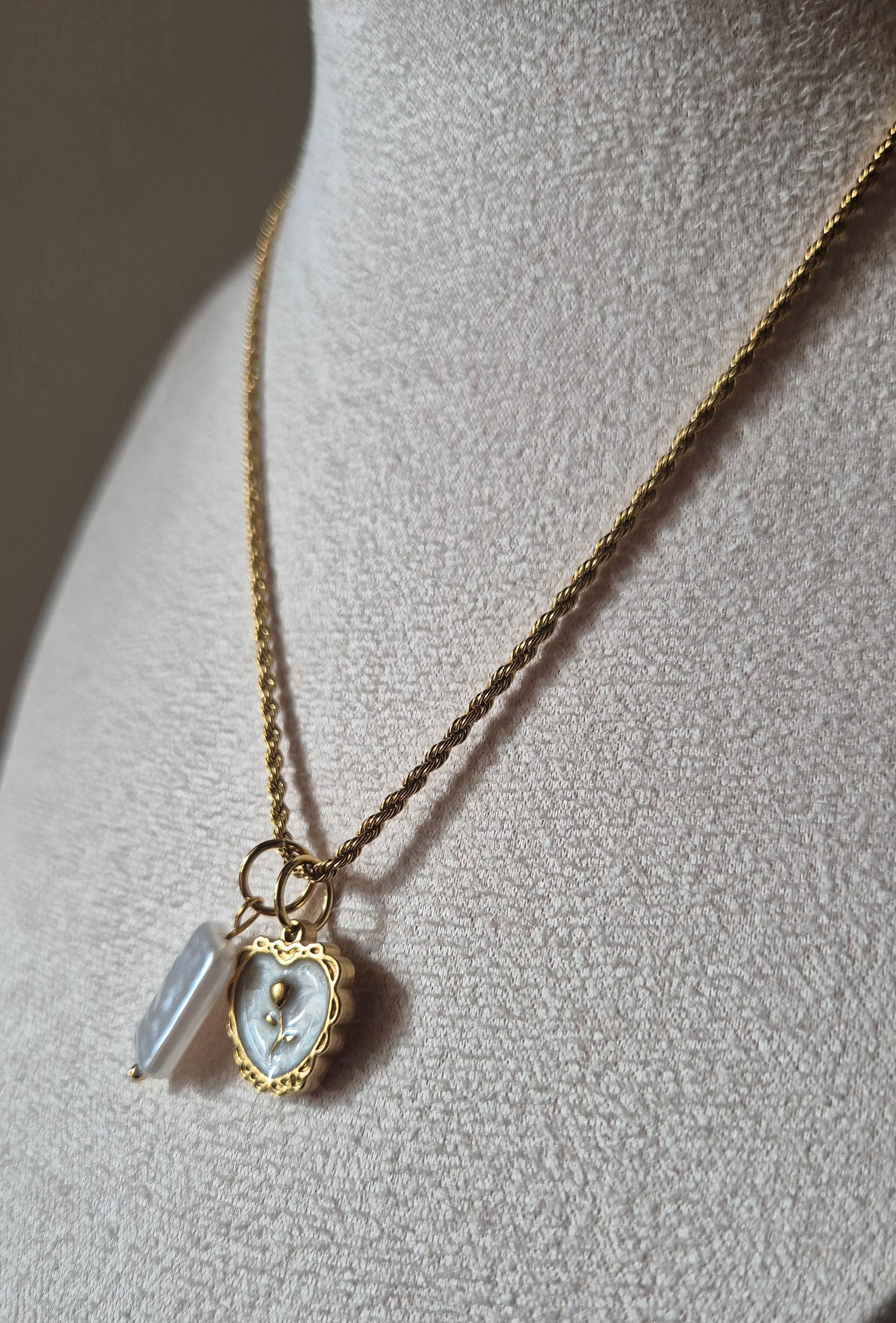 Collier en acier inoxydable doré & deux pendentifs